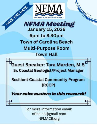 Northend Flood Mitigation Alliance (NFMA) meetings are designed to bring information to help our members better understand issues and possible solutions for flood mitigation and building resilience.